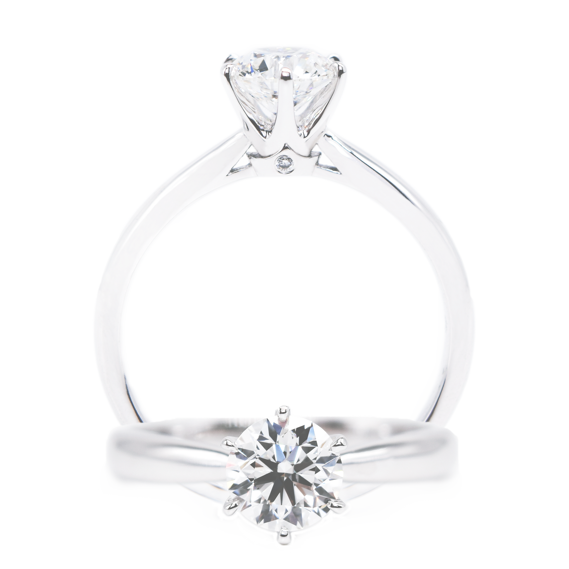 A classic and ever-lasting 6 prong solitaire ring design with a little delicately touch with a small crown. It's one of the most iconic and popular engagement ring design ever made by Cupid Jewellery.